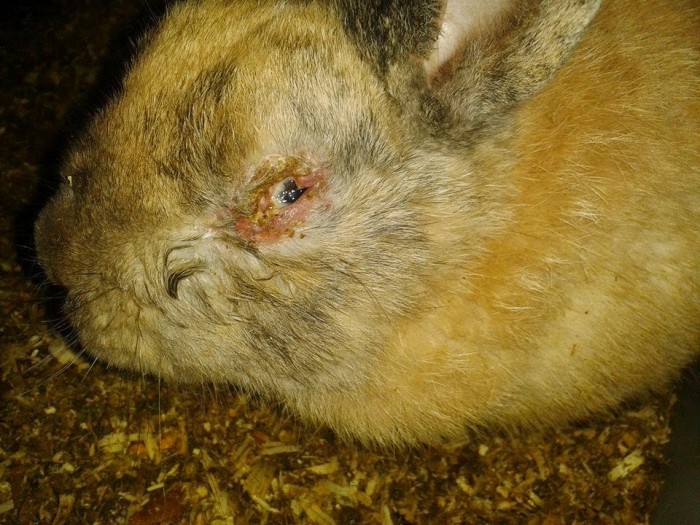 Sick rabbits, males held together so that will lead to fights and it's consequences.....
